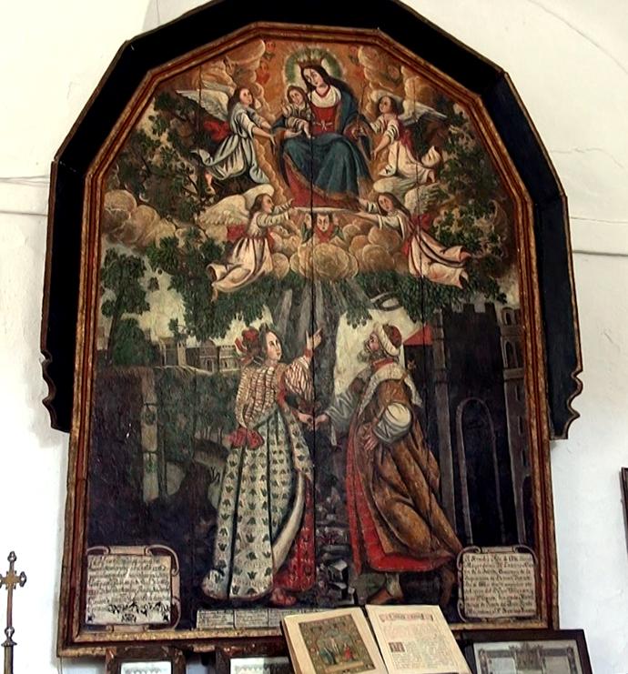 Bueno, pues un buen día la Princesa se encontraba jugando junto a una fuente y se le apareció la Virgen María, en forma de una joven doncella, sobre la copa de una encina. Esta aparición se hizo más frecuente, hasta que un día vio brillar sobre la cabeza de la jovencita una aureola destellante.